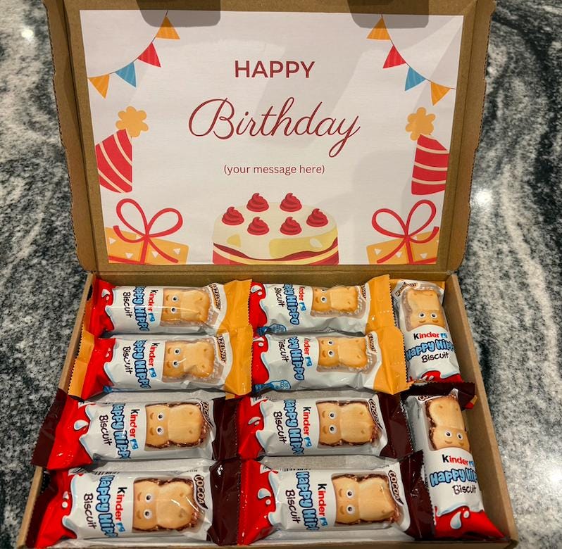 Treat yourself or a loved one to the sweetest indulgence with our Kinder Happy Hippos Box! Filled with the iconic, creamy, and crunchy Kinder Happy Hippos, this box is perfect for any chocolate lover. Whether you're celebrating a special occasion or simply satisfying your cravings, this delightful treat is sure to bring a smile to anyone’s face. Beautifully packaged and ready to gift, it's the perfect present for birthdays, special occasions, or just because!