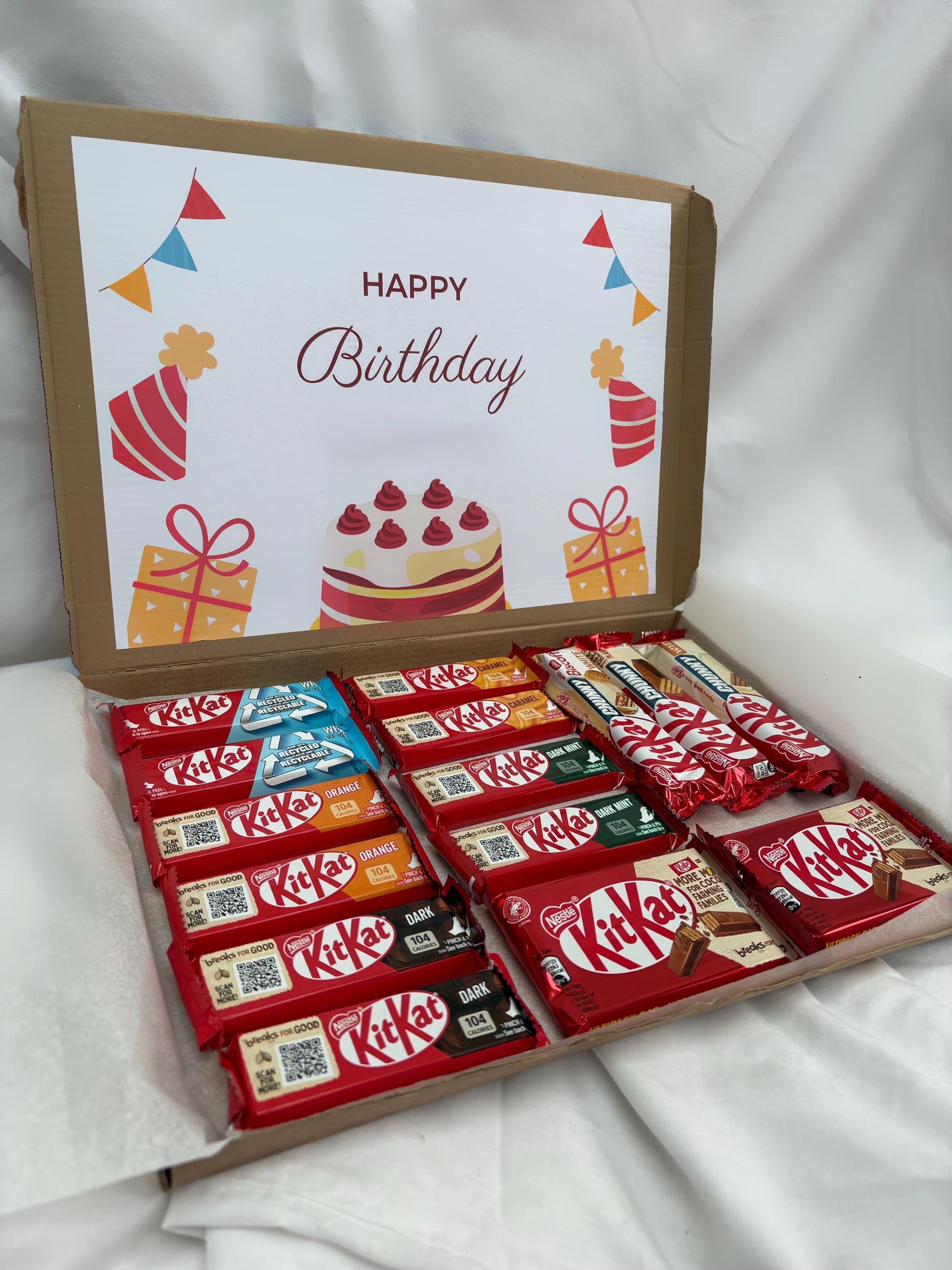 Delight in the ultimate chocolate experience with our Kit Kat Gift Box! Perfect for any chocolate lover, this box is packed with a variety of delicious Kit Kat bars. Whether you're treating yourself or gifting a friend, this sweet collection is sure to bring joy with every bite. Beautifully packaged and ready to gift, it’s the ideal present for birthdays, celebrations, or simply satisfying your sweet tooth.