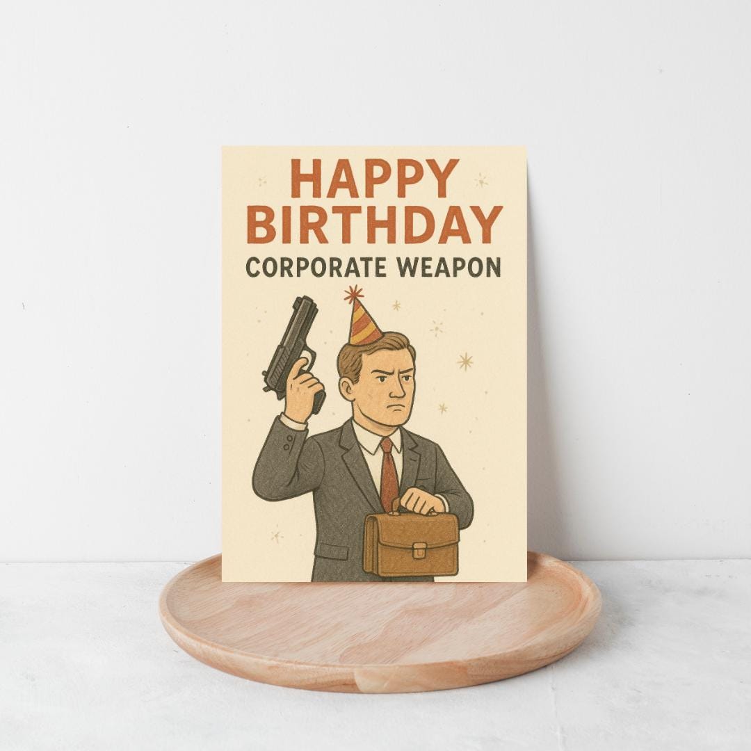 Corporate Weapon Birthday Card – Funny Hand-Drawn Business-Themed Card – Professional & Funny Birthday Greeting
