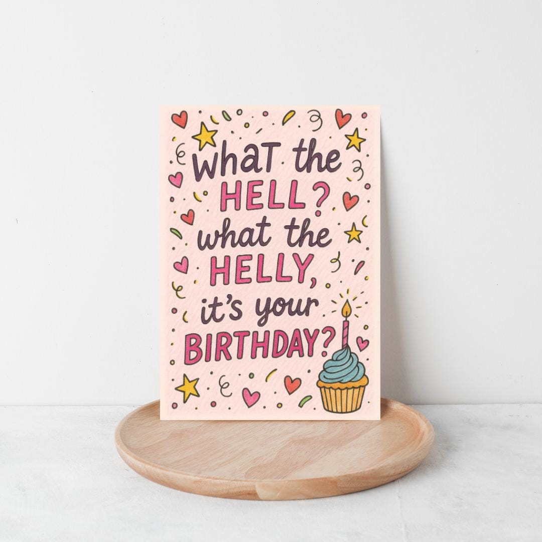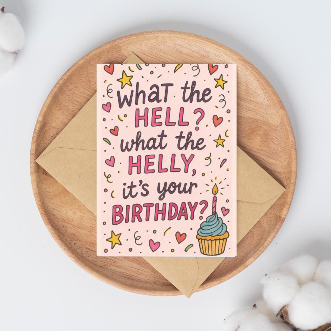 Funny Birthday Card for Friends – What the Helly Birthday Card – Bold Humorous Greeting Card – Cheeky Card for Him or Her - TikTok Meme Card